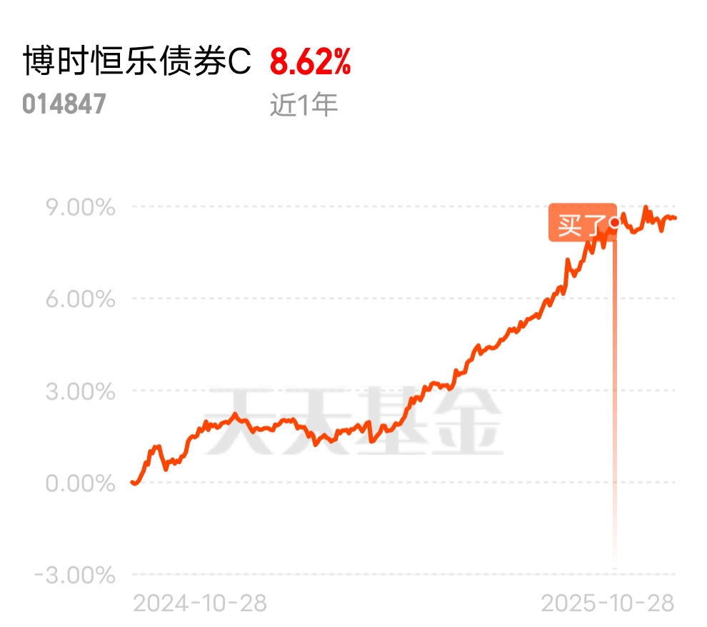$博时恒乐债券C$ 简直是今年的“全能型选手”,半年赚了635个蛋,不管债市还是股市波动,它都能稳住收益,仔细研究后发现,它简直是踩着政策风口在布局。最近最关键的两个利好它全抓住了,一是央行恢复国债买卖操作,这直接逆转了债市预期,10年国债收益率一天就降了5个基点。这只基金的债券持仓里有不少利率债,利率下行直接推高了债券价格,最近这部分收益很可观。二是证监会优化合格境外投资者制度,外资入市预期升温,它持仓的高股息股和科技龙头刚好符合外资偏好,估值有了支撑。当然更厉害的是它的权益配置策略,博时的季度报告里说要“坚守产业高景气主线”。这只基金完美落实了,TMT、高端装备这些三季度的核心主线它没错过,近期又加仓了红利风格个股,契合“性价比抬升”的判断。而且它的权益仓比例灵活,在股市强势的时候适当加仓,震荡的时候又调低仓位,风险控制得特别好。这基既能靠债券吃稳收益,又能靠权益赚超额,拿着躺赚很安逸。#黄仁勋最新演讲勾勒AI宏伟蓝图#