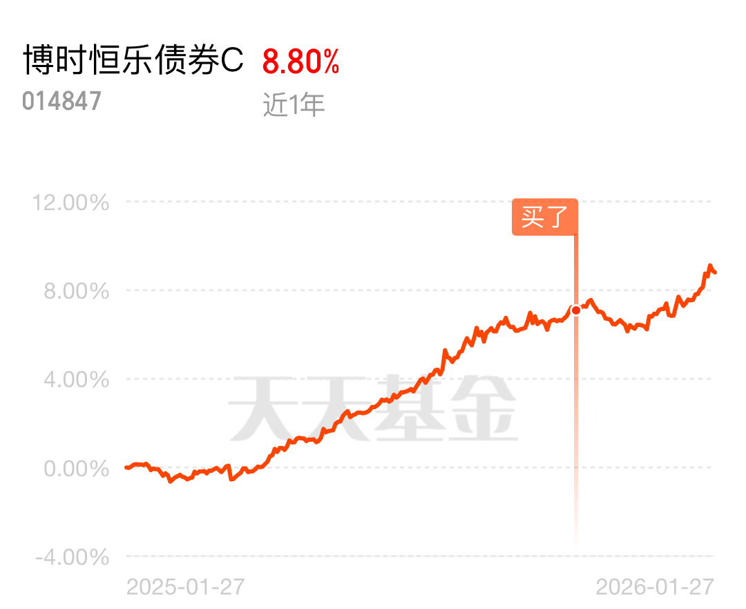市场风格轮动,A股高位盘整,债市逐步走强,$博时恒乐债券C$ 依托债券底仓追求稳定,适量权益增厚收益,抗跌又能涨。近一个月收获130个蛋,六个月累计519个,这份成绩单很亮眼。近期利好消息不断,除了央行的流动性投放,还有地方化债的加速推进。截至1月20日,2026年特殊再融资债已经发行近2000亿元,全年2万亿元的置换额度精准对接高息隐性债务,这直接降低了信用债的违约风险。博时恒乐的债券持仓里,有不少地方政府债和高等级信用债,这波化债政策直接给这些债券上了“保险”,不仅波动小,收益还很稳定。更惊喜的是它权益仓的布局,基金经理简直是“选股小能手”,新增的藏格矿业,近期表现很强势,而且盘中还触及了近一年的最高点。关键的是,藏格矿业的巨龙铜矿二期工程1月23日正式建成投产,年矿石采选规模直接提升到1.05亿吨,矿产铜年产量预计从19万吨提升到30-35万吨,按照公司30.78%的权益比例,每年能多赚不少钱。加上近期资源股迎来大爆发,2026年初不到三周,南方有色金属ETF净流入就达108.61亿元,资金抢筹迹象明显,这基精准加仓藏格矿业,未来收益空间不小。回调正好补仓,我已经埋伏好了,静待风来。#太空光伏成风口:供电太空算力#