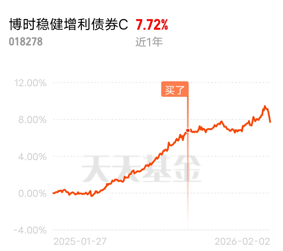 债市企稳,A股在4000点徘徊,我倾向于通过低波动的固收+产品来平衡风险。$博时稳健增利债券C$ 大部分资产配置债券,净值曲线比较平滑,能有效控制回撤;同时通过少量权益资产增强收益,近一年积累收获了772个蛋,符合我稳健增值的预期。最近避险资金大量涌入债市,最近全球金融市场不太平,伦敦金现价格单日暴跌,A股也连续回调,两市超4400只个股下跌,很多投资者都慌了,纷纷把资金转到债市这种低风险资产里避险。资金的大量流入,直接带动债券价格稳步上涨,尤其是高等级信用债和国债,需求旺盛,收益率稳步下行。这基的债券部分主要配置这类优质债券,而且基金经理会根据市场变化灵活调整持仓,之前债市波动的时候就提前调整了久期,成功规避了波动,还抓住了后续的修复行情,这也是它债券部分的核心优势,风控到位、操作灵活,能在不同市场环境下都稳定盈利。更让人惊喜的是它的权益仓位,精准埋伏了资源股,藏格矿业、盐湖股份、铜陵有色这些资源股都在前十重仓里。虽然近期部分资源股因为贵金属价格暴跌有所回调,但长期来看,全球经济复苏、国内需求回暖,工业金属和锂资源的需求会持续旺盛。铜陵有色作为工业金属龙头,受益于AI算力中心建设带来的铜需求增长,机构预测2026年全球算力中心铜需求增长35%,后续股价上涨空间巨大;藏格矿业和盐湖股份是锂资源龙头,近期锂价已经企稳回升,动力电池企业补库存需求强烈,现在正是布局的好时机。#黄金白银反攻!能稳住吗?#