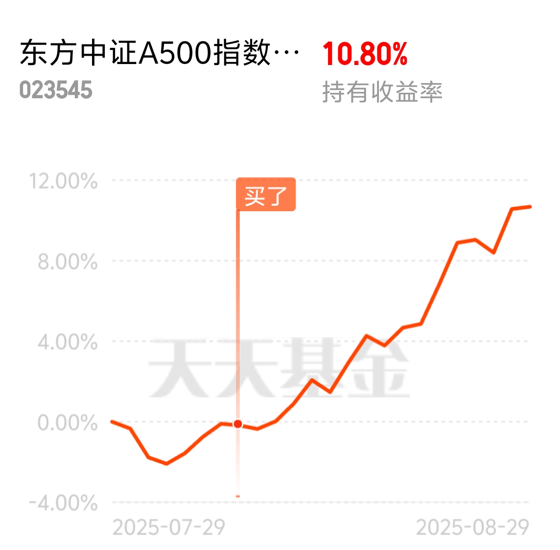 中证500今天继续上涨,牛市也不可能一直涨,等待下一轮调整,准备补一下仓,跟着多吃点肉$东方中证A500指数增强C$