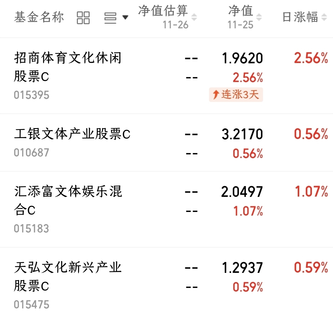 $招商体育文化休闲股票C$ 昨日上涨2.56%