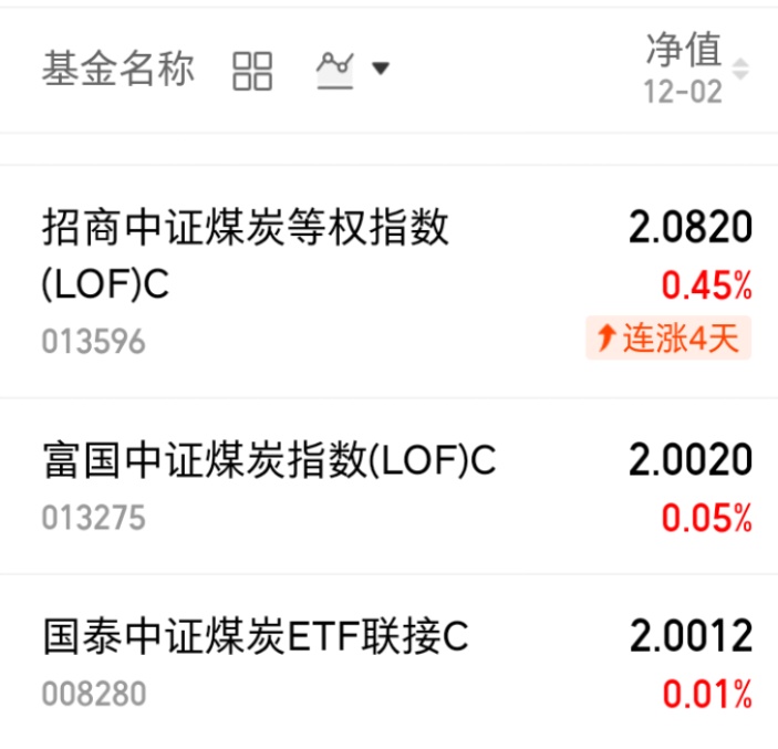 $招商中证煤炭等权指数(LOF)C(OTCFUND|013596)$上涨0.45%,业绩能力强