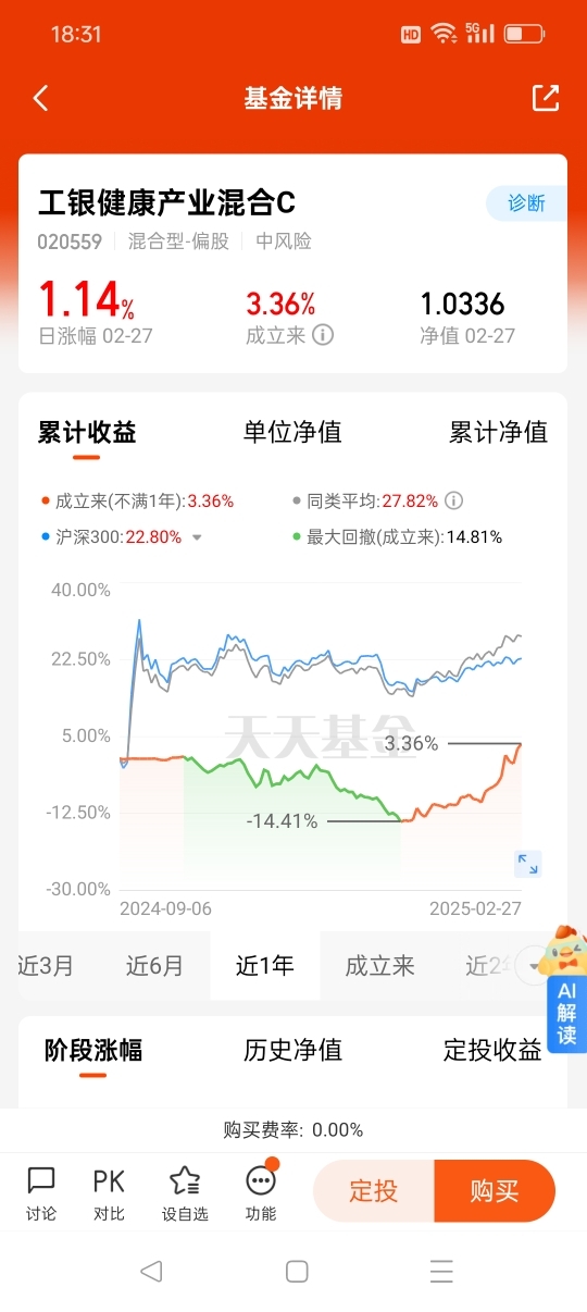 打卡第1天,我对创新药的前景很看好,下周将会定投$工银健康产业混合C$这只A+H