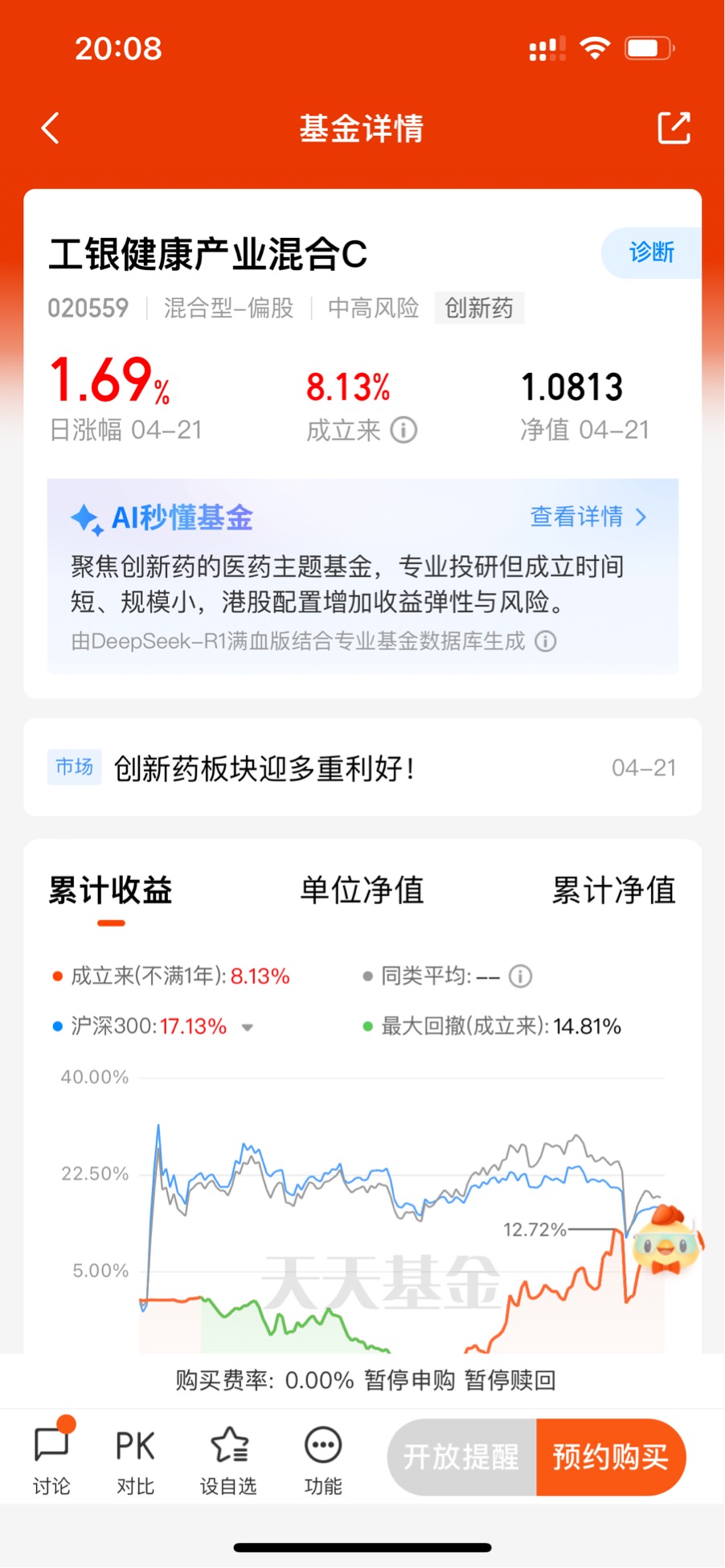 面对这样的历史性机遇,普通投资者该如何把握?我至今记得2022年重仓某创新药企的经历:虽然看准了管线价值,却因医保谈判降价超预期导致股价腰斩。现在想来,投资创新药既要看懂科学更要吃透政策,这对非专业投资者确实门槛太高。最近我选择通过工银健康产业混合这类主题基金布局,让专业团队去跟踪药企的研发进展、政策风向和商业化能力。这种"借船出海"的策略,或许比单押某个管线更稳妥。