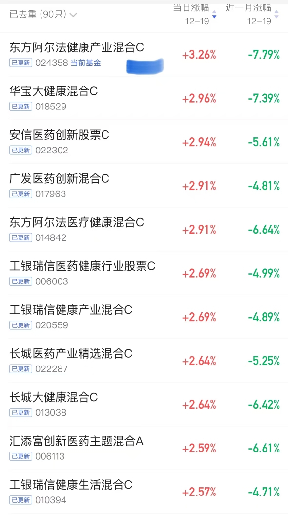 太牛了吧!今天阿尔法健康产业混合C大涨3.26%,遥遥领先呢,它主投创新药,上涨