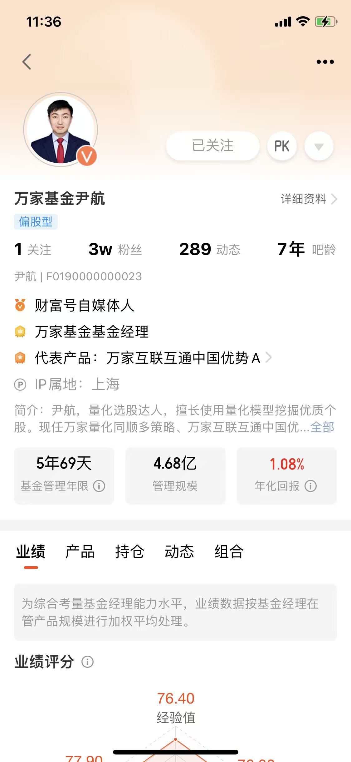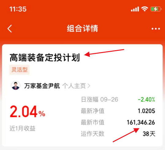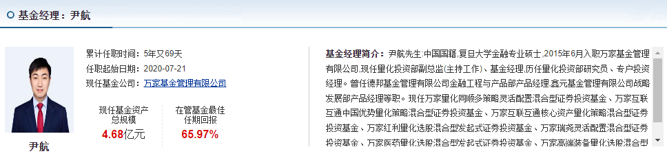 最近我注意到万家基金的尹航经理就开了一个“高端装备定投计划”,用自己的钱去定投他管理的万家高端装备量化选股混合发起式A(020560)这支“主动量化”基。。
