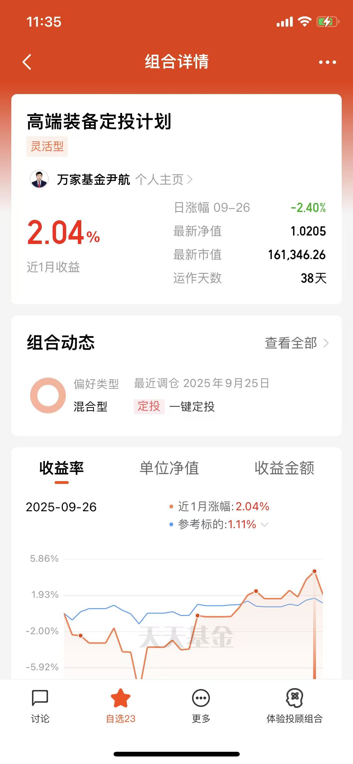 当然,我也不认为基金经理开实盘就是“万能钥匙”。实盘只能起到参考和心理安慰的作用,投资还是要结合自己的风险承受能力。但在当下这个市场情绪比较复杂的阶段,有这样一个“基金经理同路人”的信号,至少能让大家少一些焦虑。特别是尹航的这只高端装备量化选股混合A,不仅有主题赛道加持,还有量化策略护航,再加上费率上的优势,我觉得确实挺值得长期关注。