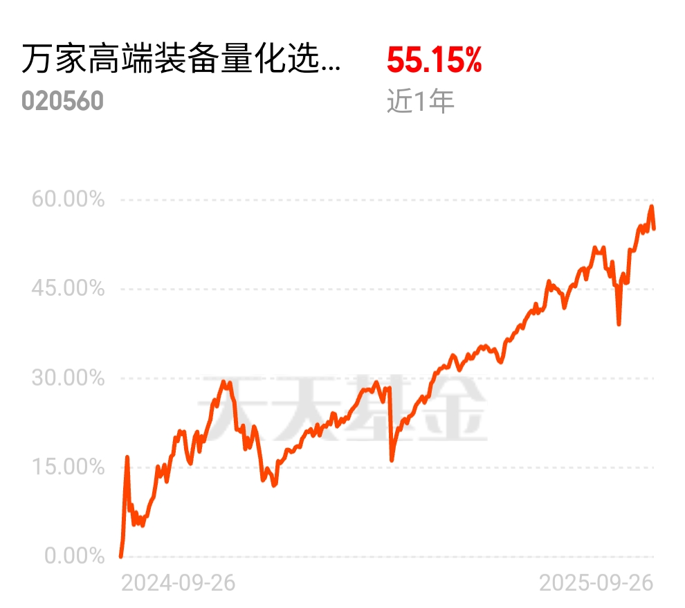 从产品布局看,$万家高端装备量化选股混合发起式A$ $万家高端装备量化选股混合发起式C$ 聚焦高端装备制造主题,通过量化模型在严控风险的前提下精选个股,力争长期超越中证高端装备制造指数收益。其持仓既覆盖了工业机器人核心部件、智能检测设备等细分领域的龙头企业,也纳入了新能源装备、航空航天装备等政策重点支持方向的优质标的,实现了对高端装备产业链的广泛覆盖。