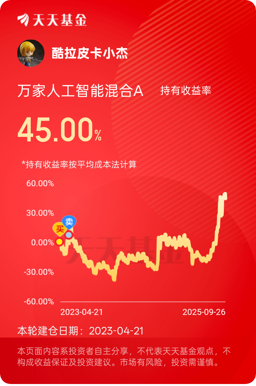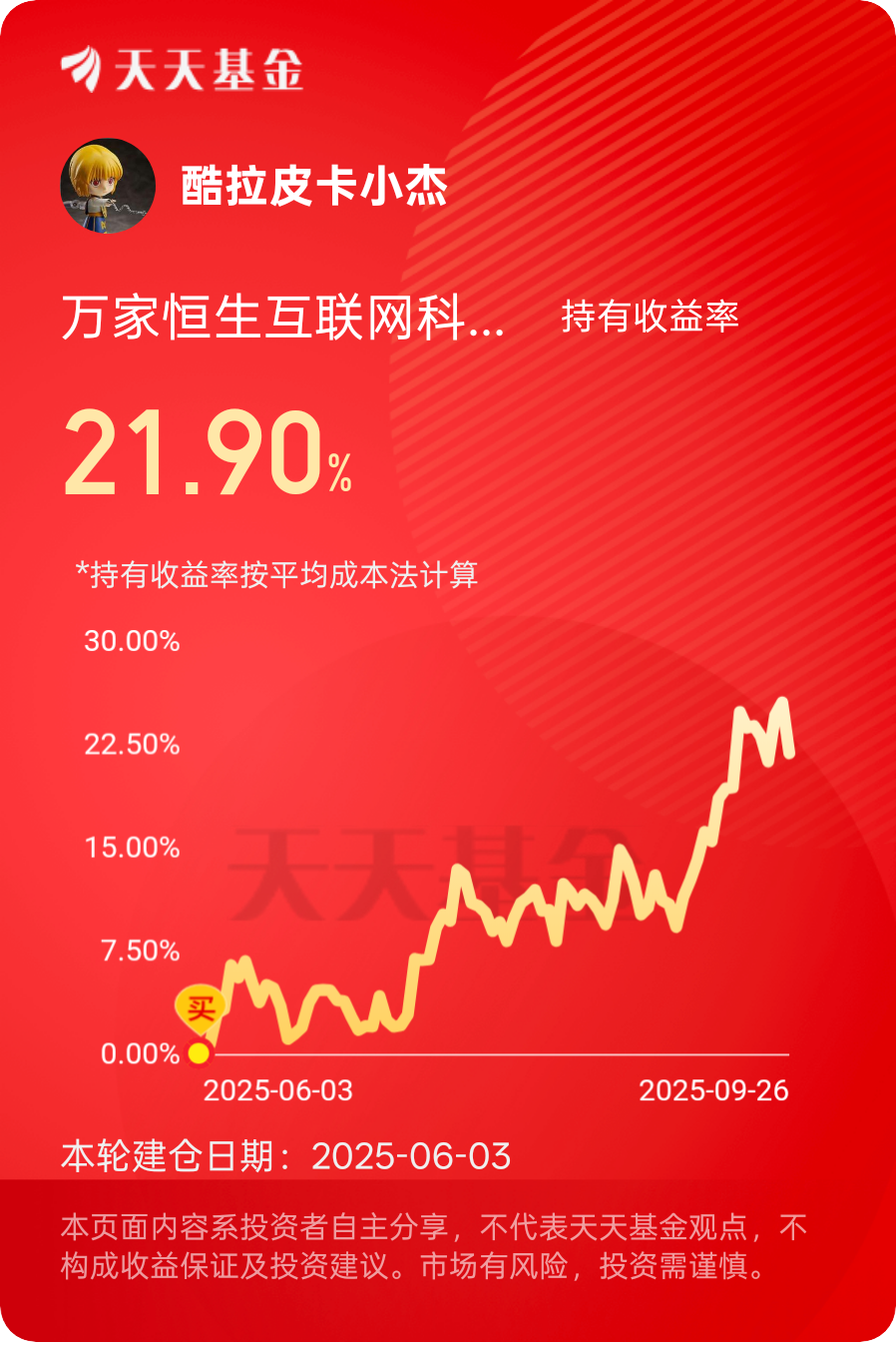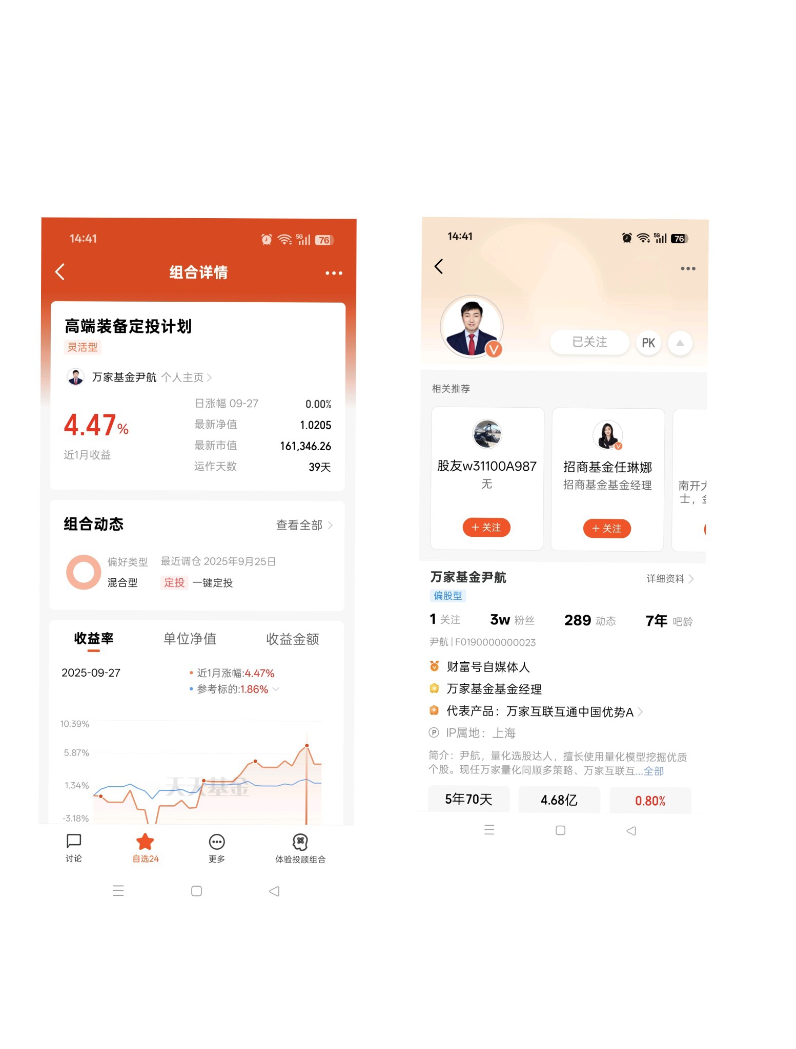 另外,尹航经理在实盘管理过程中采取定投模式,有效降低了市场震荡带来的影响,能够在震荡行情逐步建仓,完成布局,并耐心等待新一轮反弹行情到来!@万家基金