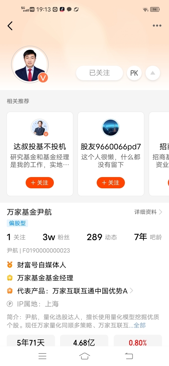 基民小虎是万家基金的铁粉,长期定投持有$万家创业板指数增强C$ $万家中证红利ETF联接C$ $万家家瑞债券A$ 等多只基金,收益回报和持有体验都非常好!将会继续定投买入万家基金的产品,并且长期坚定持有!@万家基金 @万家基金 尹航