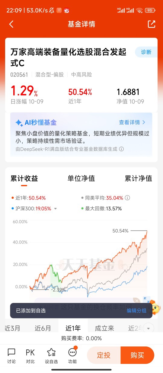 关注尹航的起点,是他扎实的专业履历与穿越周期的业绩沉淀。作为复旦大学金融硕士,他在量化领域深耕12年,其中8年投资管理经验的积累,让其从万家基金量化投资部副总监的岗位上脱颖而出 。这种长期积淀并非空谈,而是有实打实的业绩佐证:他管理的万家高端装备量化选股混合发起式A,近一年复权单位净值增长率达52.94%,在166只同类基金中跻身前十,近半年和近三个月业绩也稳居同类前30% 。更难得的是其风控能力——2018年、2022年两次市场大跌中,他管理的产品均跑赢基准,今年二季度半导体板块回调15%时,其基金仅下跌8.2%,展现出"涨时能跟涨、跌时少回撤"的特质 。对投资者而言,这种历经牛熊检验的业绩,远比短期爆发更具说服力。