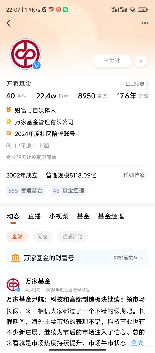 持有他管理的万家纳斯达克100指数基金的体验,更让我坚定了关注的决心。这只基金虽规模2.8亿元不算突出,但精准跟踪指数成分股,苹果、英伟达等科技巨头持仓占比近五成,今年来收益率达4.22%,在QDII产品中表现稳健 。更打动我的是其定期报告的详尽程度——尹航会用2000字以上篇幅分析行业趋势,即便市场短期震荡,也会明确表示"不因波动调整核心资产配置",这种长期主义视角帮助我克服了追涨杀跌的冲动 。