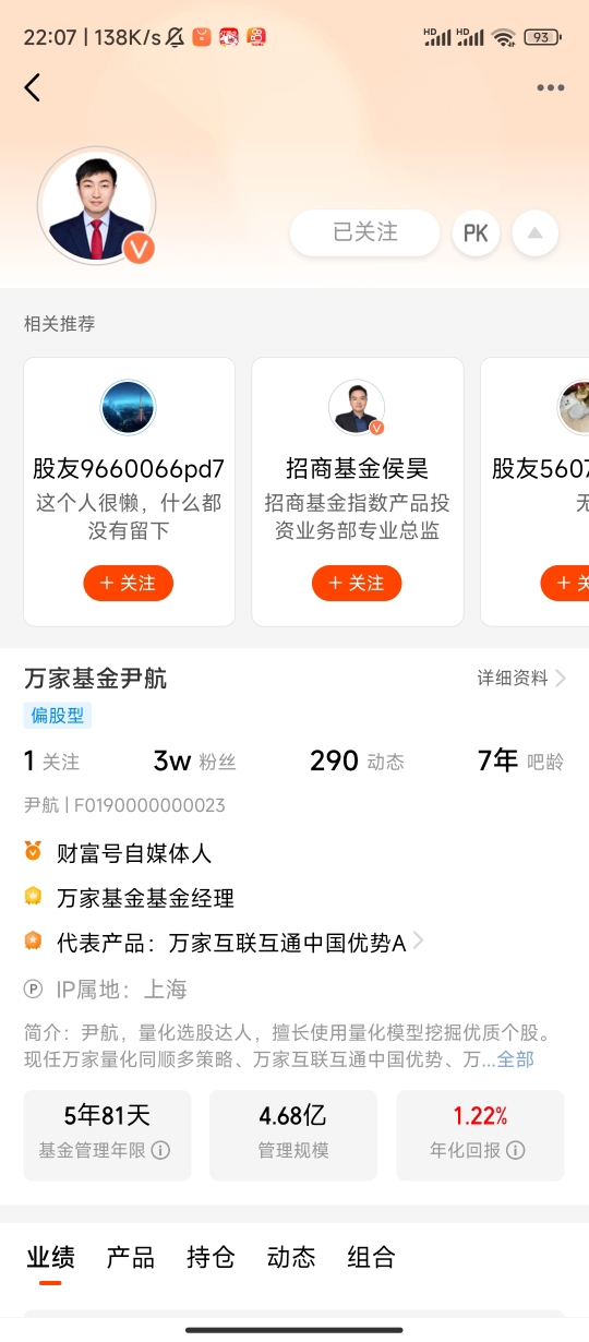 在量化投资成为市场热点却又鱼龙混杂的当下,找到一位兼具专业深度、业绩韧性与沟通诚意的基金经理并不容易。万家基金的尹航,正是我持续跟踪近一年的"重点观察对象"。从他管理的公募产品到亲自下场运作的实盘组合,其贯穿始终的投资逻辑与可感知的持有体验,让我坚信这是值得长期关注的投资标杆。