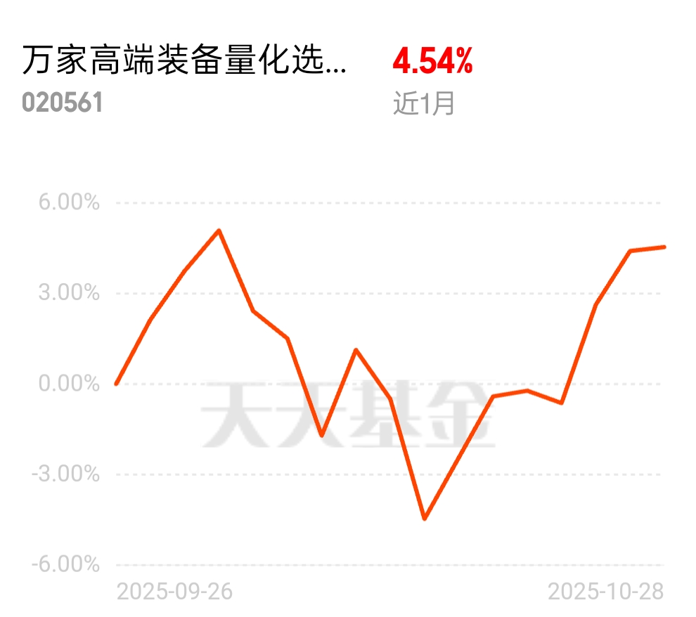 昨天居然也上涨了,这是真不错,今天也要加油哦$万家高端装备量化选股混合发起式C$