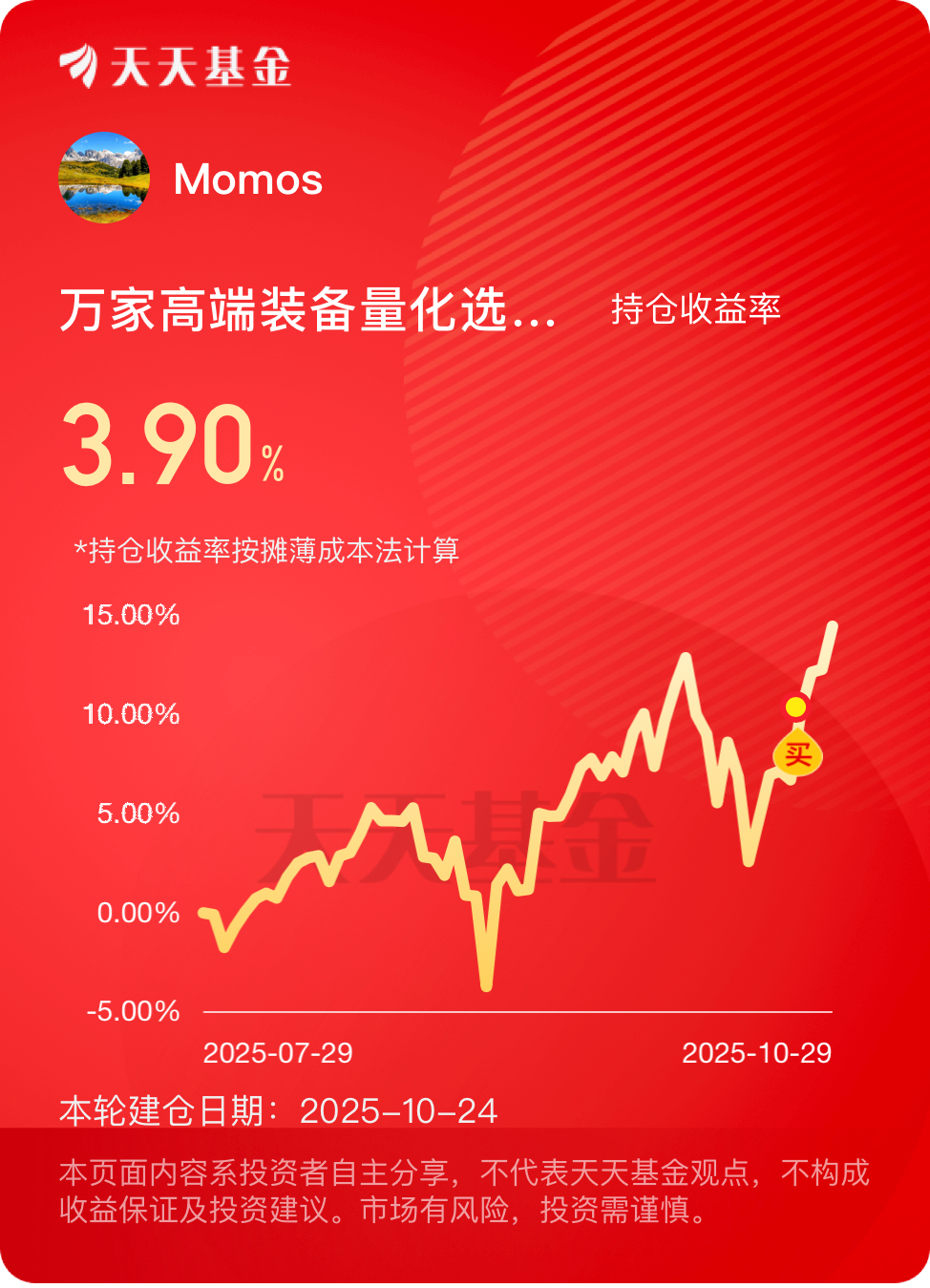 比较了一些买的基金,$万家高端装备量化选股混合发起式C$这样的好产品非常适合目前