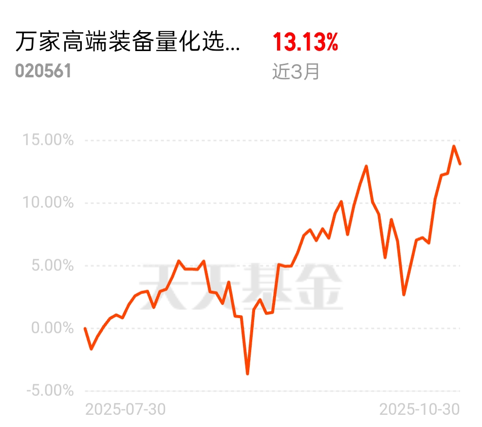 高端装备这段时间表现还不错,虽然说昨天调整了不少,不过我觉得问题不大$万家高端装备量化选股混合发起式C$
