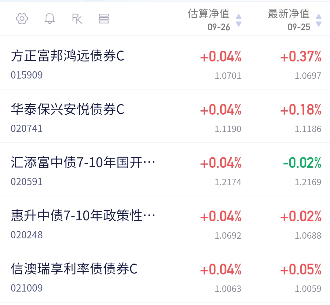 债市回暖,经过之前的调整债市现在的位置性价比还是很不错的。看看盘面,利率债涨幅很不错,10年红0.3个BP,超长红0.7个BP,我感觉今天应该能收蛋了吧。信用债开盘比较一般。我猜$方正富邦鸿远债券C$ 今天能收到15-20,久期高的话在回暖行情下确实很占优势,昨天收蛋也是最多的。$汇添富中债7-10年国开债E$ 预计3-8个蛋,0-5年的预计1到3个蛋,利率债指数基的话就是回血能力差一些。按照目前的状态看,央妈净投放加上基本面的偏弱,债市后面机会还是比较大的吧,今天继续拉升,让我多回回血啊!#指数操盘手集结令#