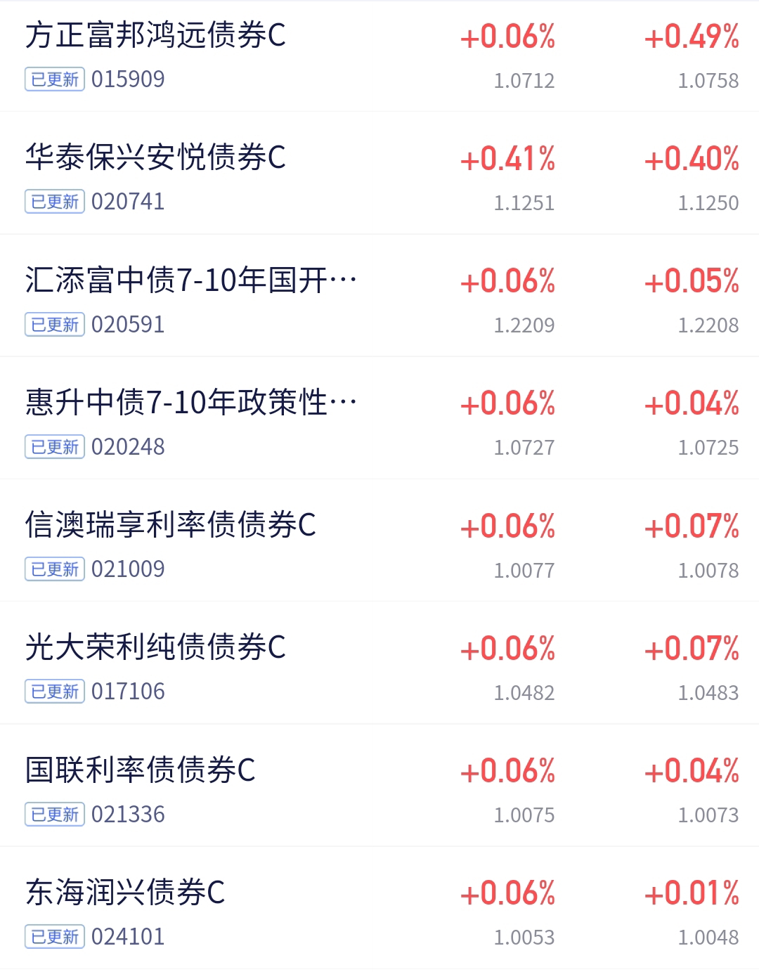 今天利率债表现不错,资金宽松托底,$方正富邦鸿远债券C$ 又秀了一把,49个恐龙蛋稳稳入袋!这弹性太能打,其他基只能望尘莫及。