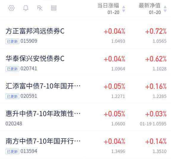 下午那波利率债拉升来得干脆利落,情绪一下子被点燃。我的组合今天全红,鸿远独占72个蛋,其他基虽少些,但也算雨露均沾,小确幸拉满。$汇添富中债7-10年国开债E$ 今晚净值更新了,16个蛋蛋,也还可以的,加油!