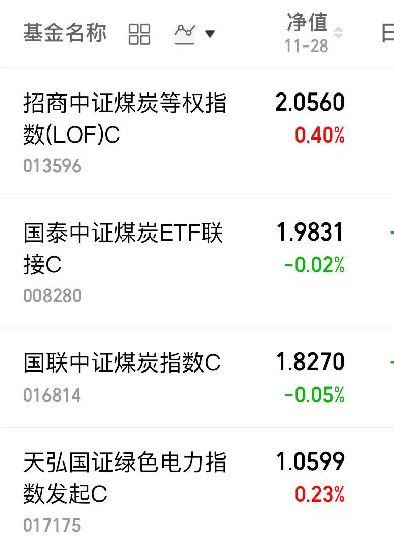 $招商中证煤炭等权指数(LOF)C(OTCFUND|013596)$上涨0.40%