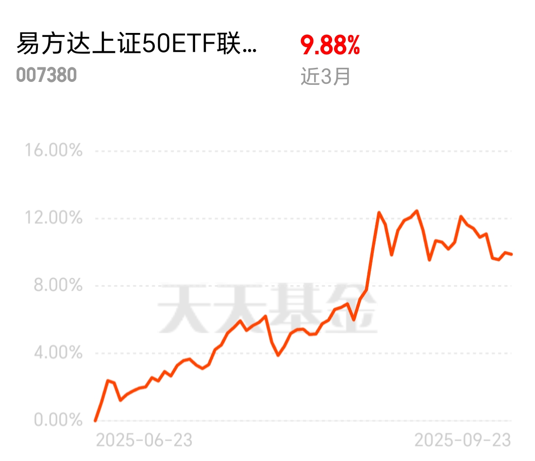 想给持仓降风险,又不想错过收益,选了这只。易方达上证50ETF联接C近3月9.8