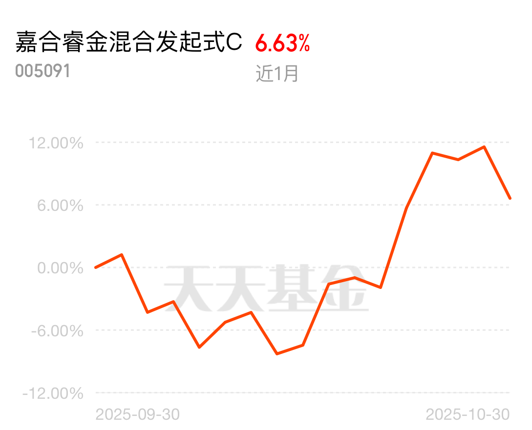 国内大厂投AI算力,CPO和存储芯片需求增。嘉合睿金混合C抓住,近一个月收益6.63%,一周10个点抓住了。