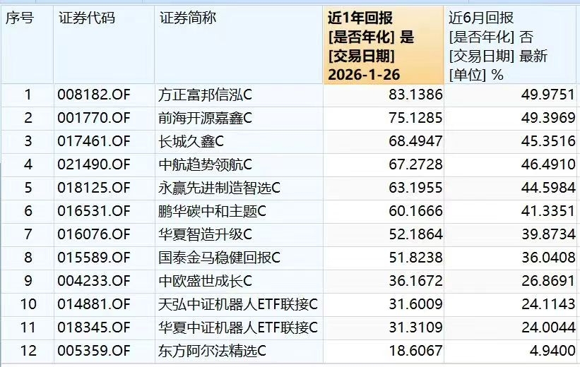 近一年机器人板块结构性机会突出,主动基金表现分化。信泓收益约83%,主要受益于在