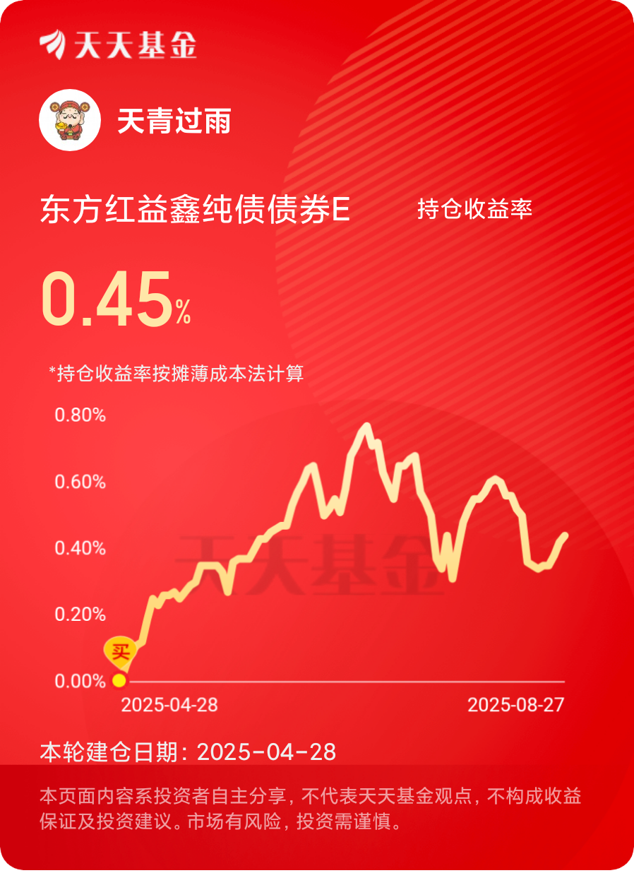 现在的股市我看不懂,看不懂就不买,就老老实实守着益鑫呗$东方红益鑫纯债债券E$ #晒收益#