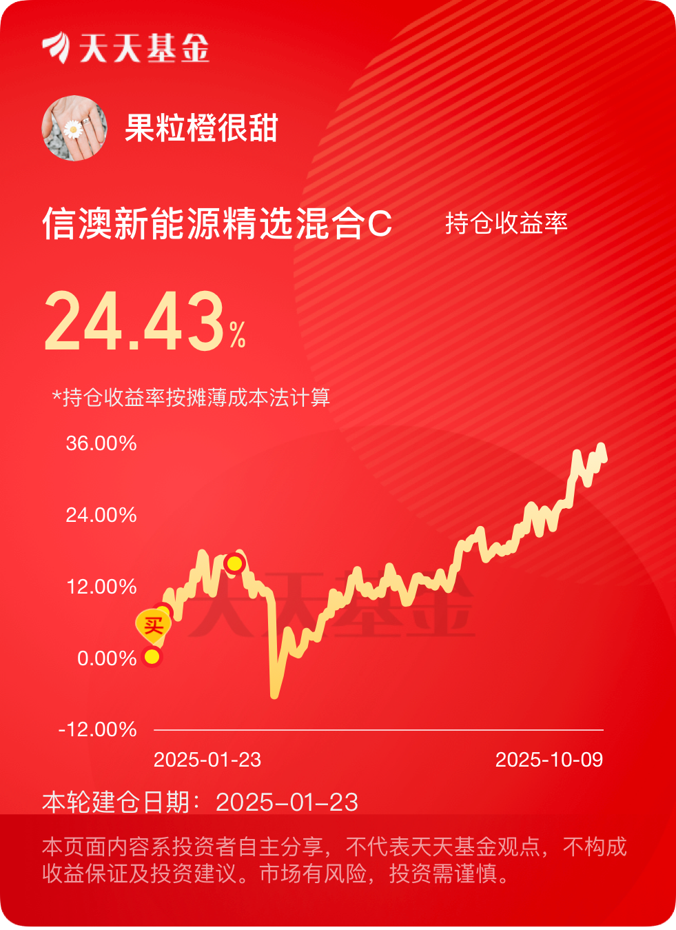 $信澳新能源精选混合C$性价比不错,接着布局,看好新能源的长期表现