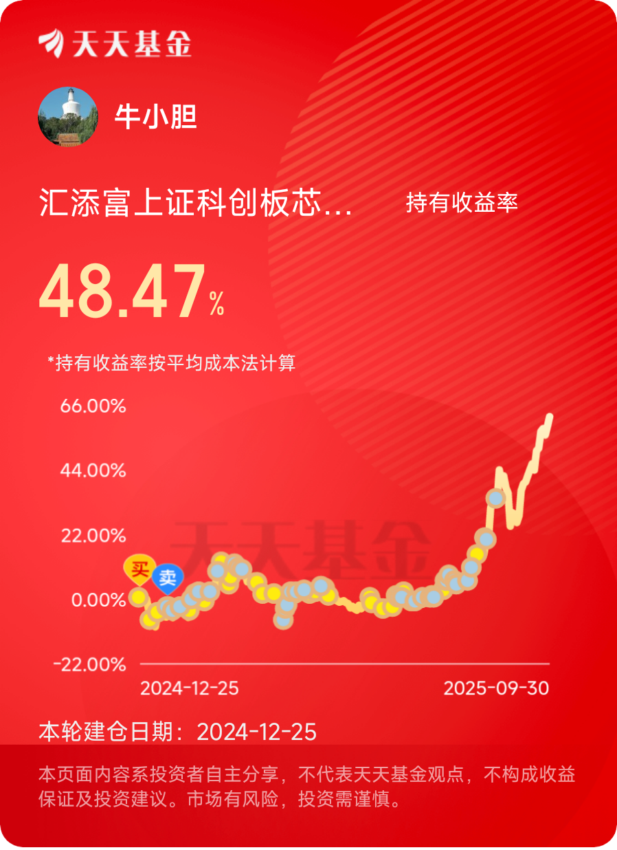 10月9日开盘的钟声还没敲响,但我已经做好了准备——继续拿着这只汇添富科创板芯片ETF联接C,陪着这条黄金赛道慢慢走下去。毕竟好的投资,从来都不是靠急功近利,而是选对方向后,沉下心来的坚定与等待。@汇添富基金 $汇添富上证科创板芯片ETF发起式联接C$