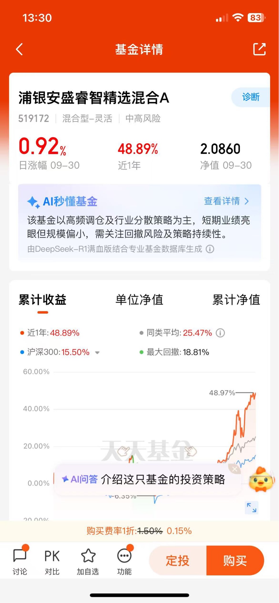 国内科技股估值有望修复中美价差,还没上车芯片的可以看看$浦银安盛睿智精选混合A$ ,近一年47个点,涨幅确实可以呢