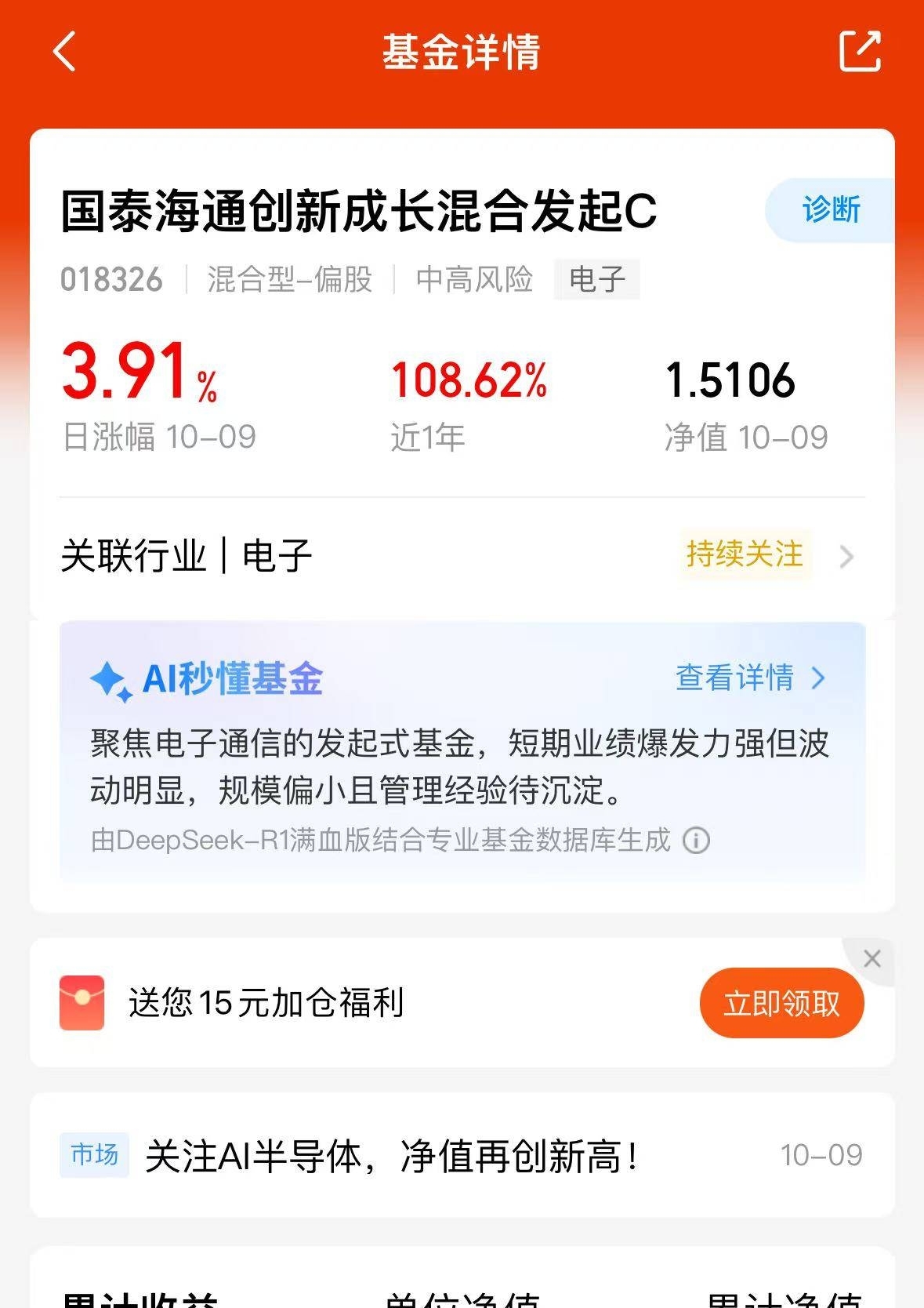 错过大涨别遗憾!这支基年内108.62%收益打底,持仓覆盖算力全产业链,昨日光模块冲锋验证配置逻辑。