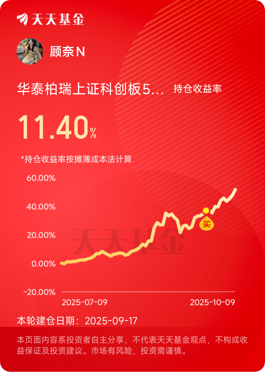 还得是$华泰柏瑞上证科创板50成份ETF联接C$ 啊,一个月静悄悄涨了21%多,三个月更是干了51%!牢牢拿住主线才是王道。#晒收益#