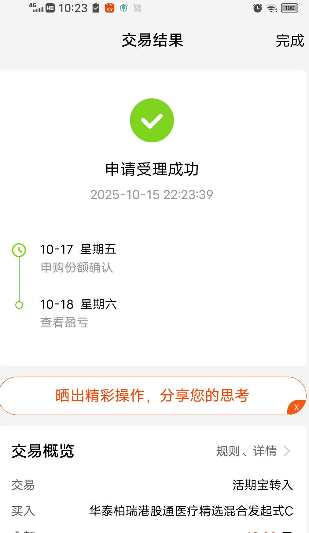 $华泰柏瑞港股通医疗精选混合发起式C$今天表现亮眼,上涨2.65%。产品100%