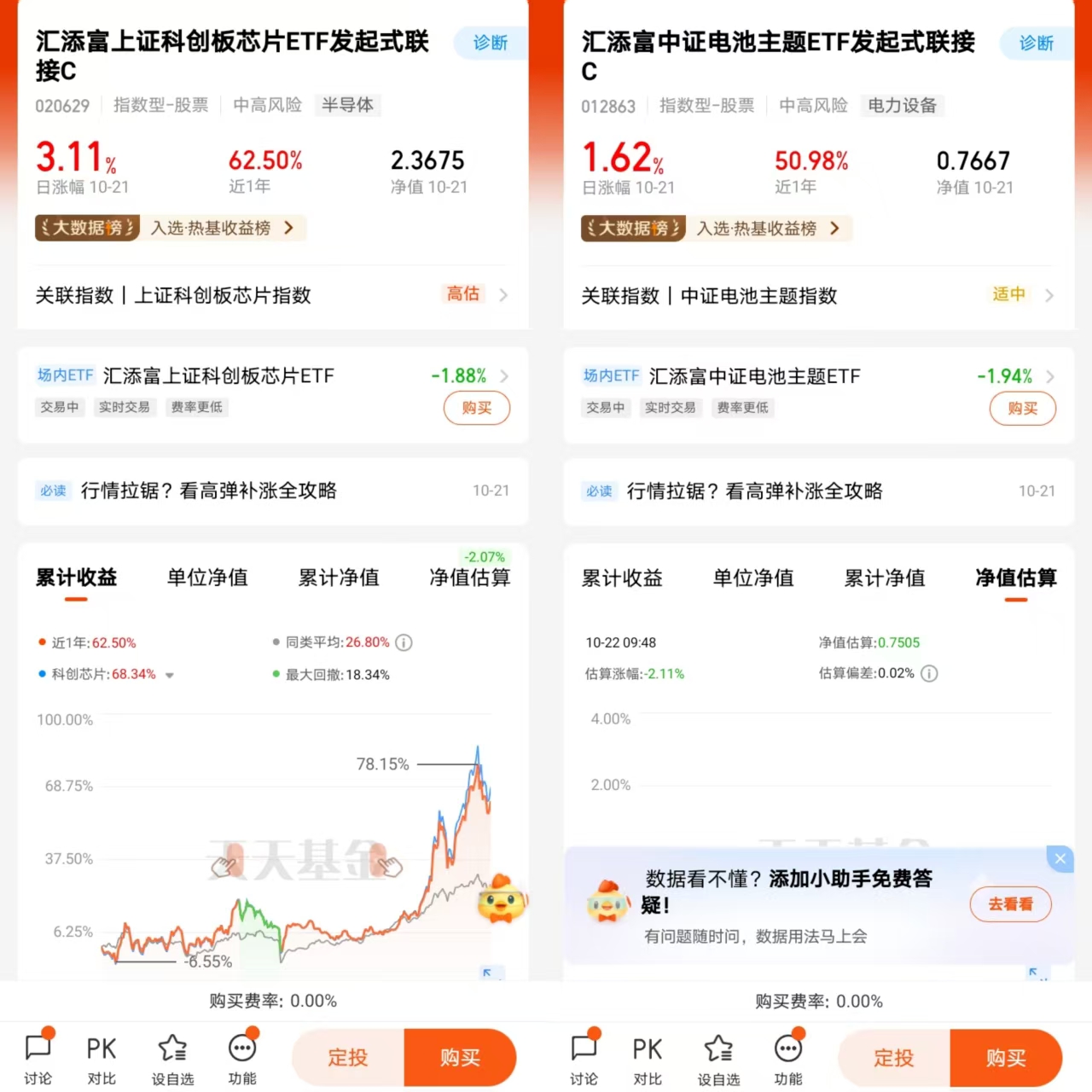 $汇添富中证电池主题ETF发起式联接C(OTCFUND|012863)$、$汇添富上证科创板芯片ETF发起式联接C(OTCFUND|020629)$