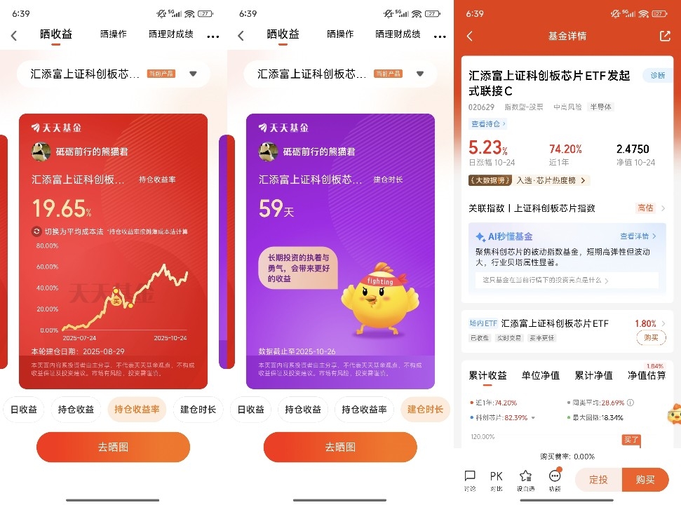 是的,今年7月我买入了汇添富上证科创板芯片ETF发起式联接C(020629),至今收益20%。但这份“战绩”背后,是无数个与焦虑和解的深夜,是理财心态从“内耗”到“躺平”的蜕变。