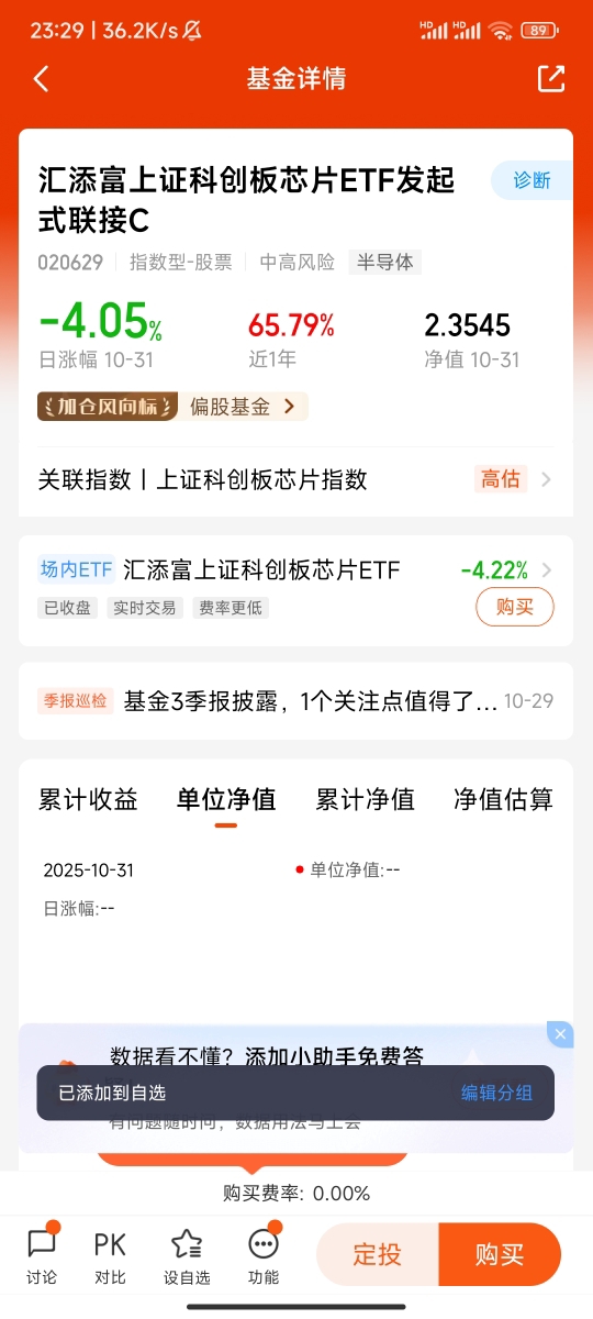 对于普通投资者来说,想要布局芯片板块,无需纠结于挑选单一股票——毕竟芯片行业技术壁垒高、研发周期长,单一企业的不确定性较大。而通过汇添富上证科创板芯片ETF发起式联接C这样的基金产品布局,既能分散风险,又能精准把握整个科创板芯片板块的成长红利,是更稳妥的选择。作为“应卷尽卷派”,我已经做好了长期持有的准备,用持续的研究跟踪陪伴板块成长,而不是在短期波动中反复内耗。