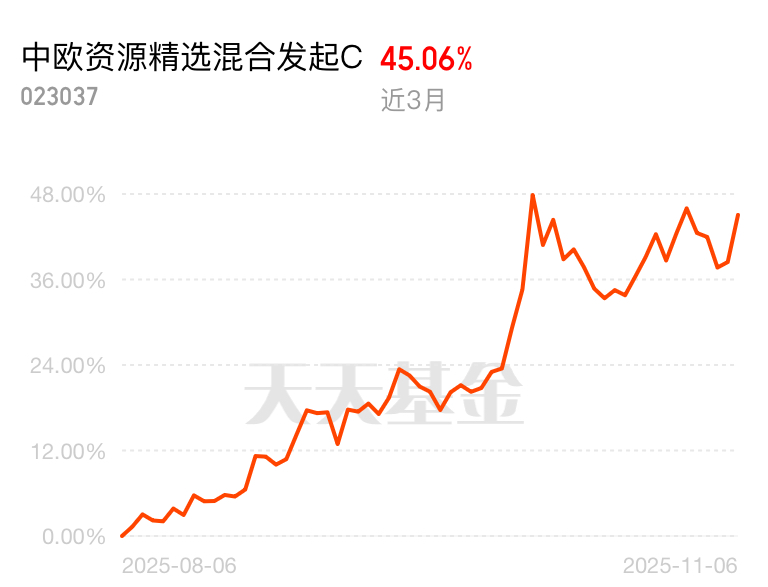 市场最近没什么活力,板块轮动缓慢,涨得少跌得多,整体赚钱效应差。中欧资源精选混合C一枝独秀,近3个月涨了45.06%,深耕全球稀缺资源,契合“十五五”资源安全导向,基金经理经验丰富,操作灵活,震荡市也能赚得盆满钵满。