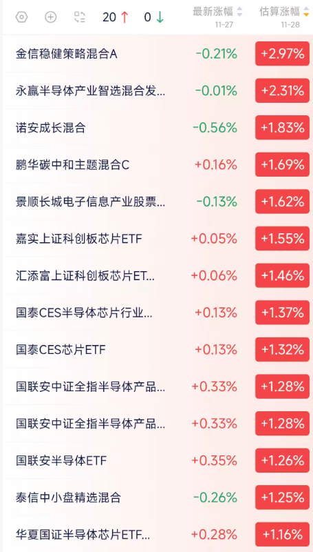 半导体行业基金估值盘后快报:收益全览,关灯吃面