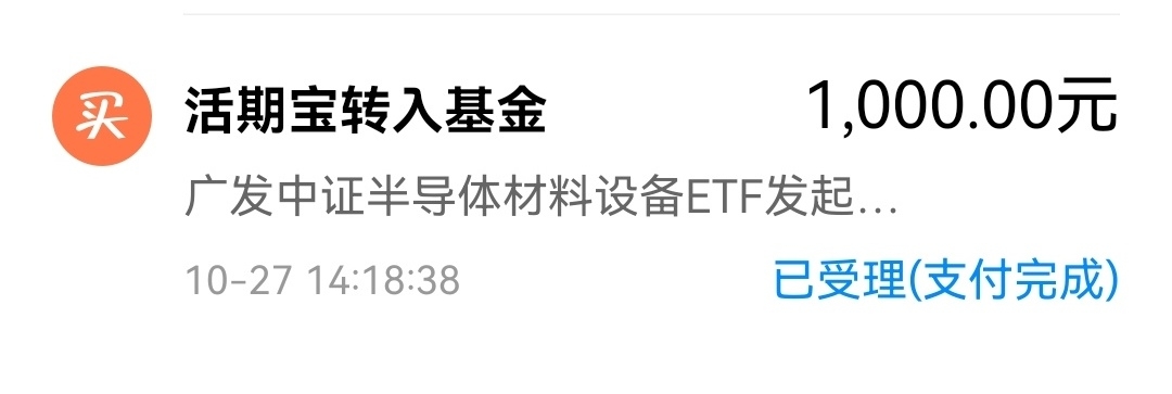 1、$广发中证半导体材料设备ETF发起式联接C(OTCFUND|020640)$ ,买入1000元