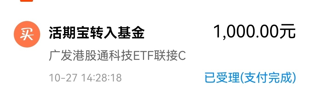 2、$广发港股通科技ETF联接C(OTCFUND|025198)$ ,买入1000元