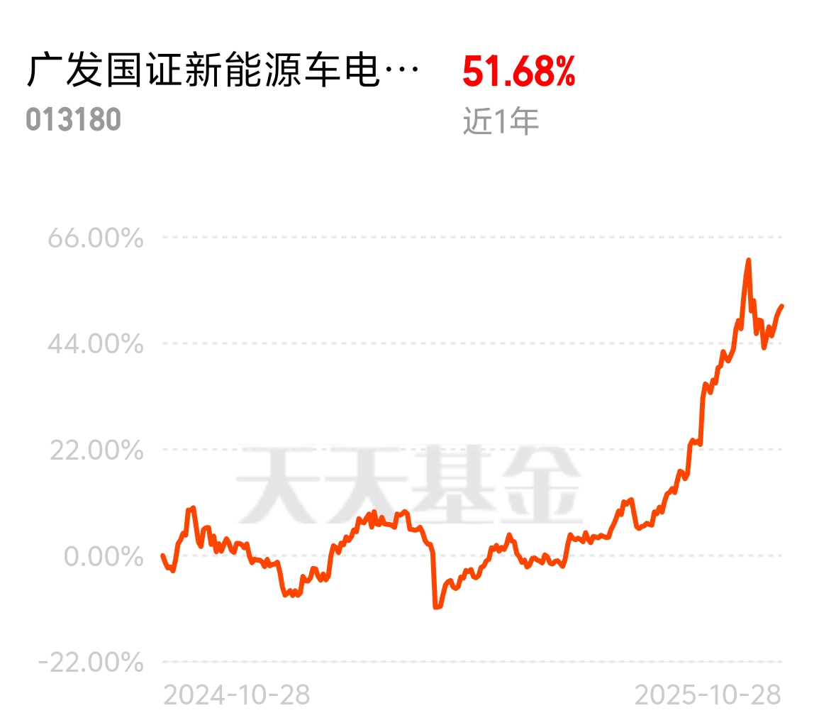 大盘涨幅挺不错的,继续看好$广发国证新能源车电池ETF联接C$ !3个月能涨到超36%就是实力,新一轮牛市继续冲起来!