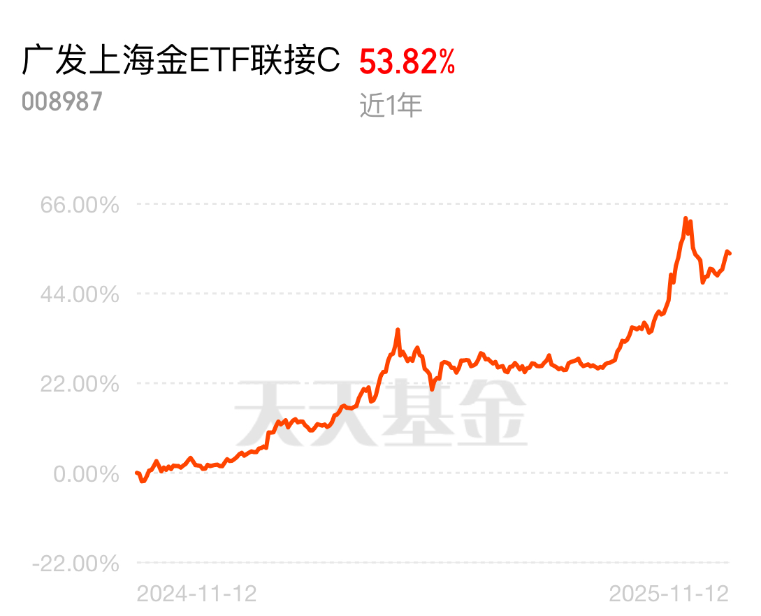 听我的兄弟们,黄金行情还没走完!现在上车$广发上海金ETF联接C$也来得及,一年