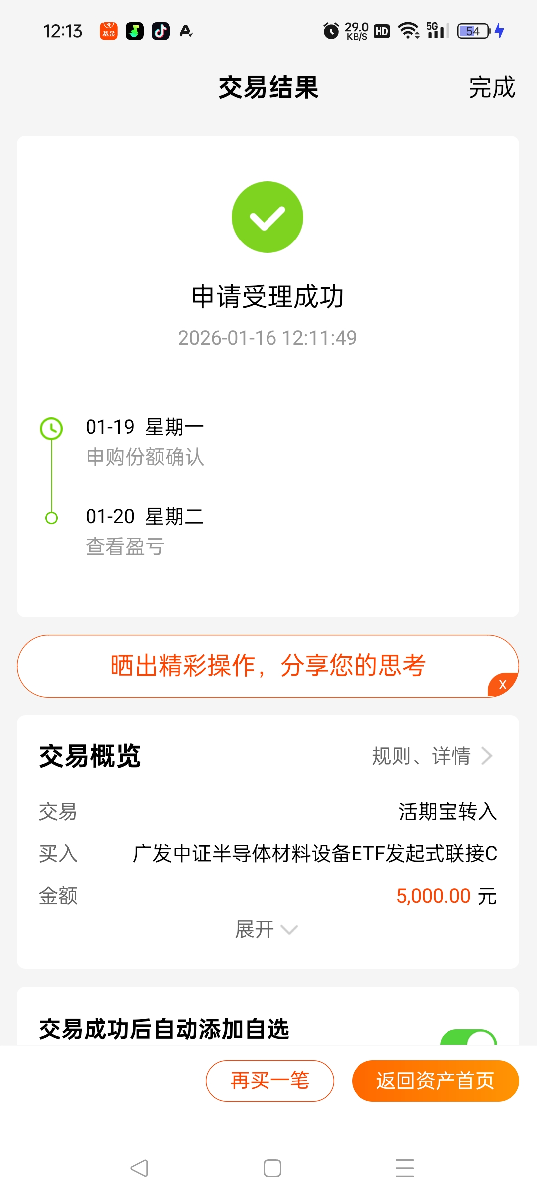 广发中证半导体材料设备联接C(020640)这款基金刚好能抓住半导体强势领涨的这波行情的机会,猴哥先进场5000块,有机会再另行加仓,打算长期持有。