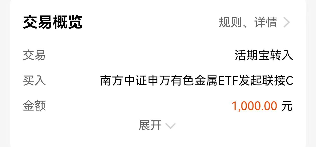 有色:加仓一份$南方中证申万有色金属ETF发起联接C(OTCFUND|004433)$ ,看吧,小小昨天还在说,强者恒强,涨不停,不停涨,今天大涨就又来了!真就是强者恒强!这只昨天微跌0.82%,今天就又要大涨5.2%,近一年涨幅已经攀升到了123.73%,这段时间的有色真的太牛了。目前小小分批攒的份额也收获了10个点了,反正有利润打底,小小就还是主打一个以利博利!目前黄金LOF和白银都限购了,有色金银含量也高,做个替代还是ok的,资金热情在,做多无压力。