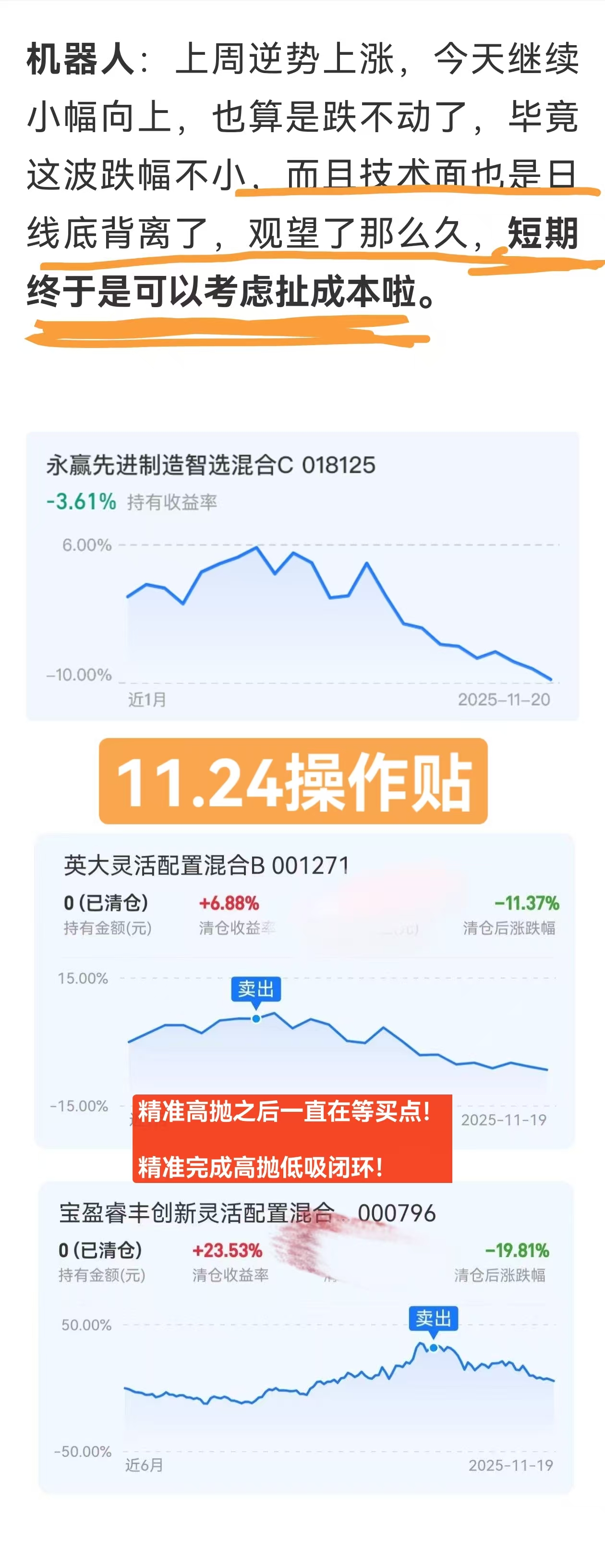 机器人:目前指数虽然跌幅不大,但是人形机器人混基普遍跌幅不小,二次回踩,消化技术面调整需求是核心。所以,逢跌低吸,以周线视角格局依旧是其最优解。好歹小小是精准高抛之后,观望很久,第一时间把握住了它右侧加法点位、开年收获逾30%的选手,对机器人的的判断还是很有信心的。