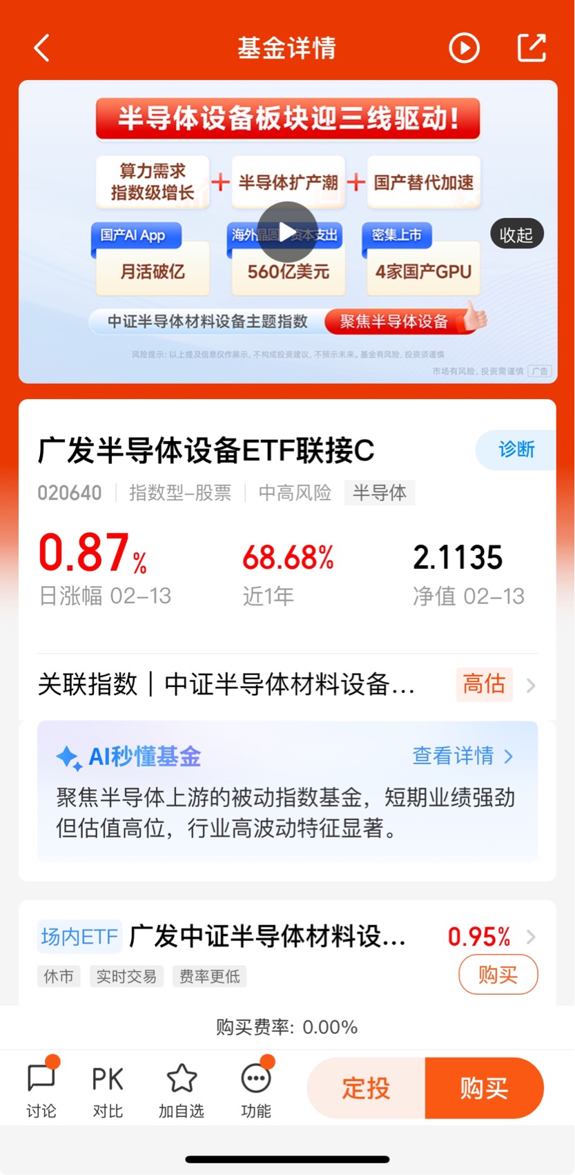 对比了一圈,最近半导体里就设备材料这条线走得最强、最持续。这基走势跟场内那个设备ETF几乎一样,弹性足,拿对了主线不用太操心