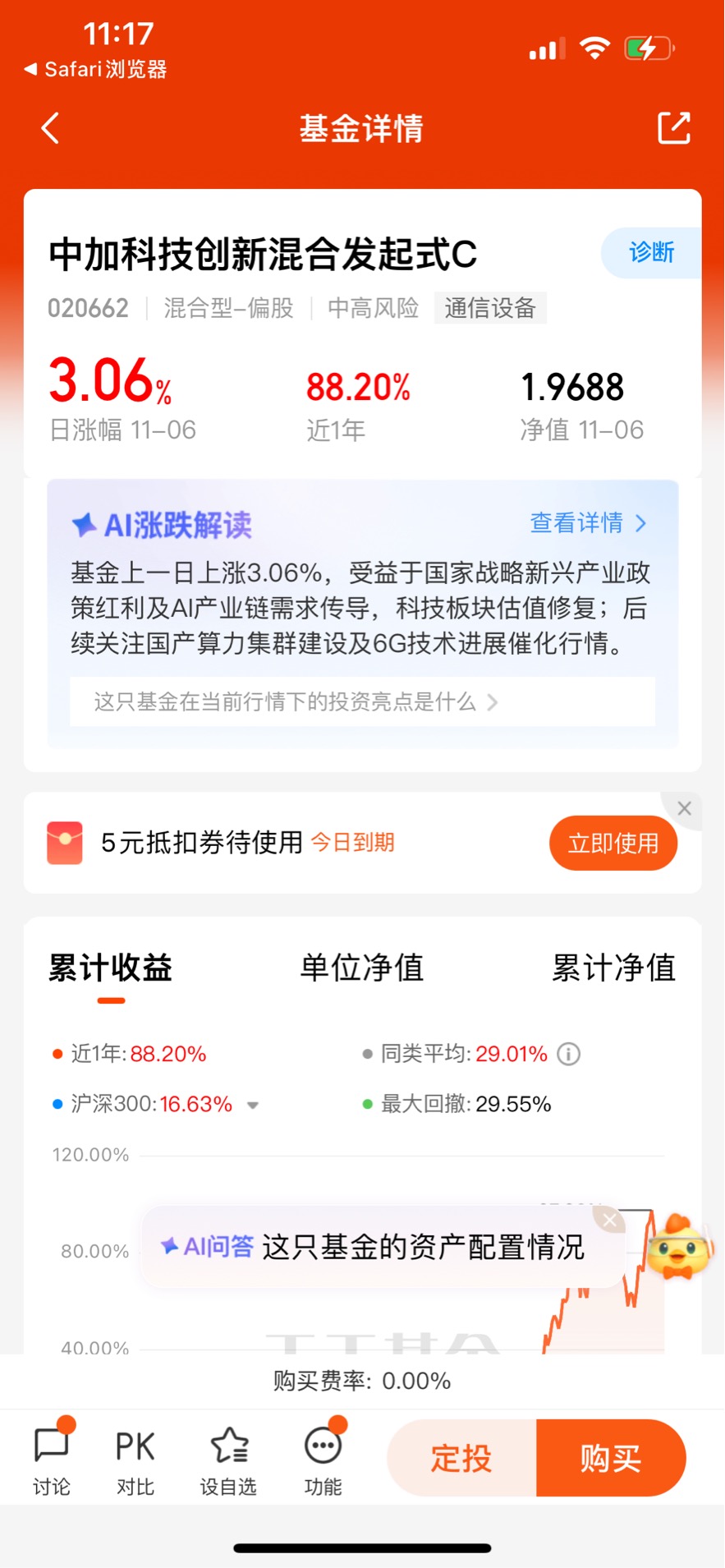 其实说了这么多,核心就一个:这基金是“天时地利人和”全占了——天时是AI牛市来了,地利是踩中了算力主线,人和是基金经理懂行、配置合理。当然了,科技基金波动大是肯定的,要是拿不住,涨得再多也跟你没关系,但要是能扛住波动,跟着这基金在科技主线上走,说不定真能在这轮牛市里赚到大钱。好产品,你值得拥有,如果喜欢,大家可以重点关注一下!!!