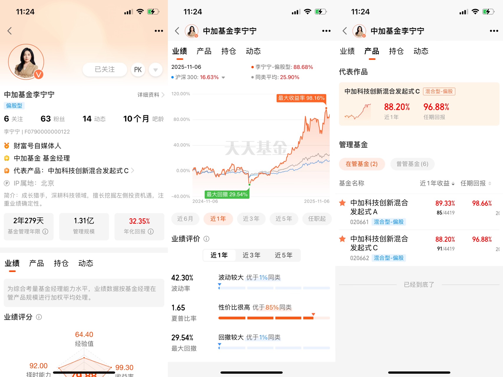 第三个原因,基金经理李宁宁是真懂科技,选股眼光毒。她虽然从业才2年多,但年化回报能到32.35%,专攻AI、芯片这些成长领域,属于“深耕型”选手——不是乱买热点,而是能在业绩拐点期就介入,比如这次重仓的光模块,刚好卡在行业产能放量、订单暴增的时候。而且她的择时能力和收益率评分都很高,虽然抗风险和稳定性稍微弱一点,但科技基金要的就是弹性,她这种“成长猎手”的风格,刚好适配当前的牛市行情。