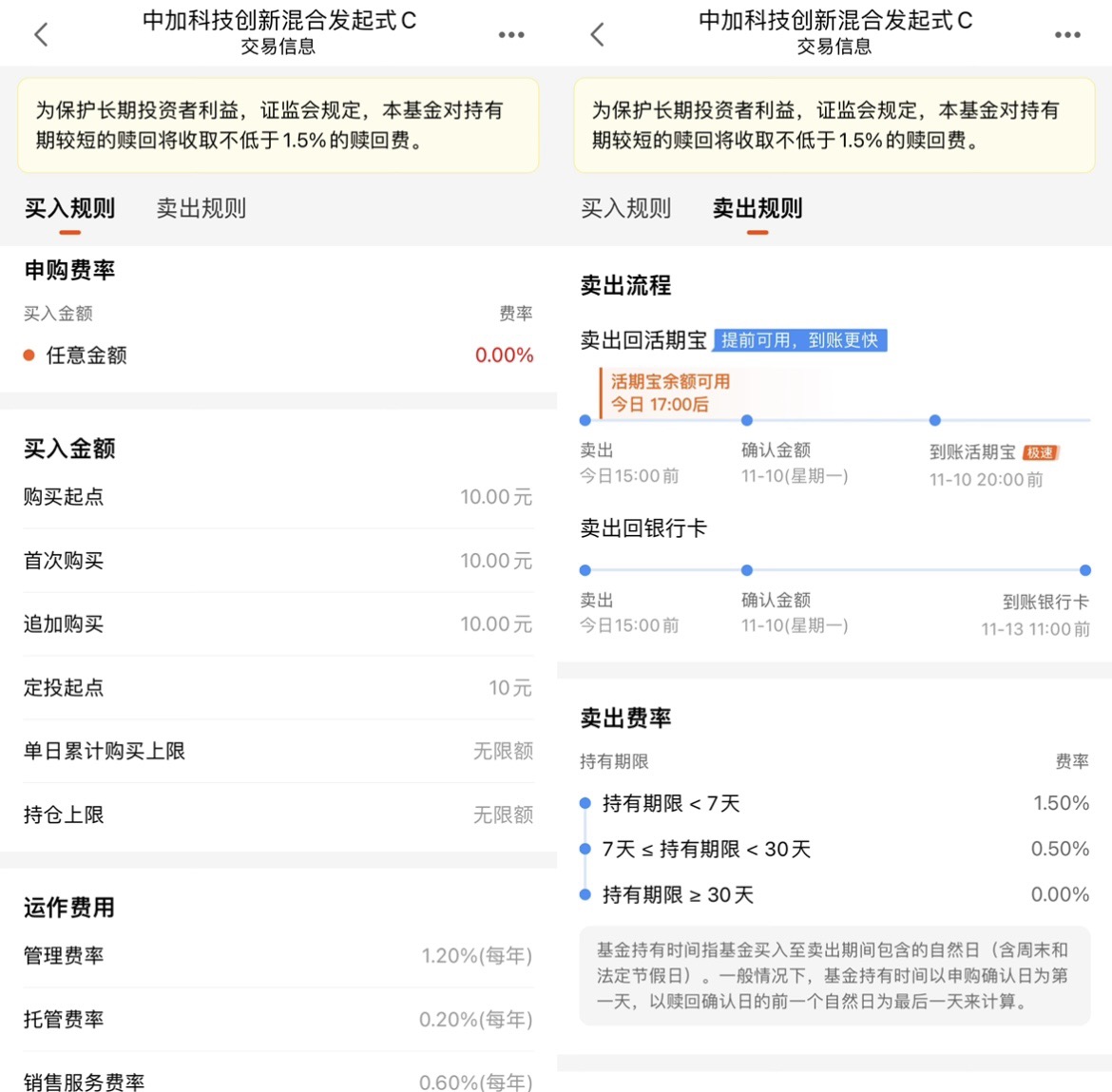 第七个原因,交易规则友好,普通投资者也能轻松上车。买入起点才10块钱,定投也是10块起,不管是学生党还是上班族,随便拿点闲钱就能买。而且卖出规则也合理,持有超过30天就不收手续费,要是短期想做波段,持有7-30天也才收0.5%,比那些持有半年才免手续费的基金强多了。管理费1.2%、托管费0.2%,也是同类基金的正常水平,不算贵,不会让手续费吃掉太多收益。